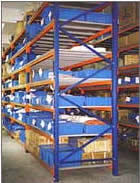 Racking but designed to store non-palletized goods. This is an intermediate application between Light and Heavy Duty applications.